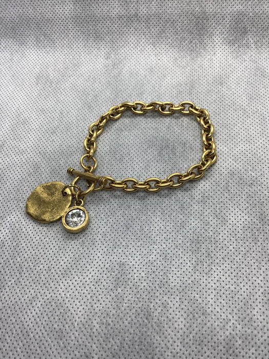 Swarovski crystal and organic disk in antique gold on a chain bracelet with toggle